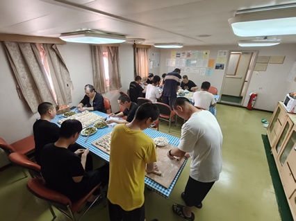 雖然不能回家,但船上的年味兒一點(diǎn)也不淡。除了值班的同事,大家一起動(dòng)手,把狹小的船艙布置得溫馨熱鬧。我笨拙地跟著老船員貼春聯(lián),把“?!弊仲N倒了好幾次,引來一陣善意的笑聲;大廚用有限的食材,做出了帶著家鄉(xiāng)味道的紅燒肉和餃子,熱氣騰騰的飯菜端上桌時(shí),來自五湖四海的船員圍坐在一起,沒有觥籌交錯(cuò)的應(yīng)酬,只有真誠樸實(shí)的問候。有人給我夾了一個(gè)餃子,笑著說:“嘗嘗,這是我們船上的‘團(tuán)圓味’?!蹦且豢?,我鼻子一酸,原來沒有親人在身旁,也能感受到家的溫暖。