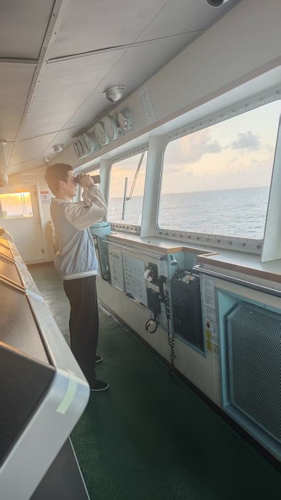 登船之日,汽笛長鳴破空,纜繩徐徐解系,傳奇輪辭別故港,逐浪而行。初涉滄海,暈船之擾、作息之殊、海風咸澀浸衣,皆在師長前輩悉心引航間,漸次安適。余隨師習系泊、瞭望、操舵、觀儀,自敲銹刷漆之養(yǎng)護細務,至航行值守之法度規(guī)程,一事一行,方知航海非風花雪月之遠行,乃嚴謹為基、協(xié)作為要、責任為綱之天職。