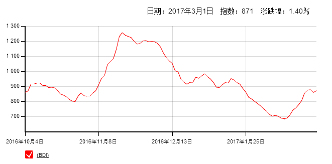 波羅的海貿(mào)易海運(yùn)交易所干散貨運(yùn)價(jià)指數(shù)周三上漲,因巴拿馬型船運(yùn)費(fèi)升至逾兩個(gè)月高位。