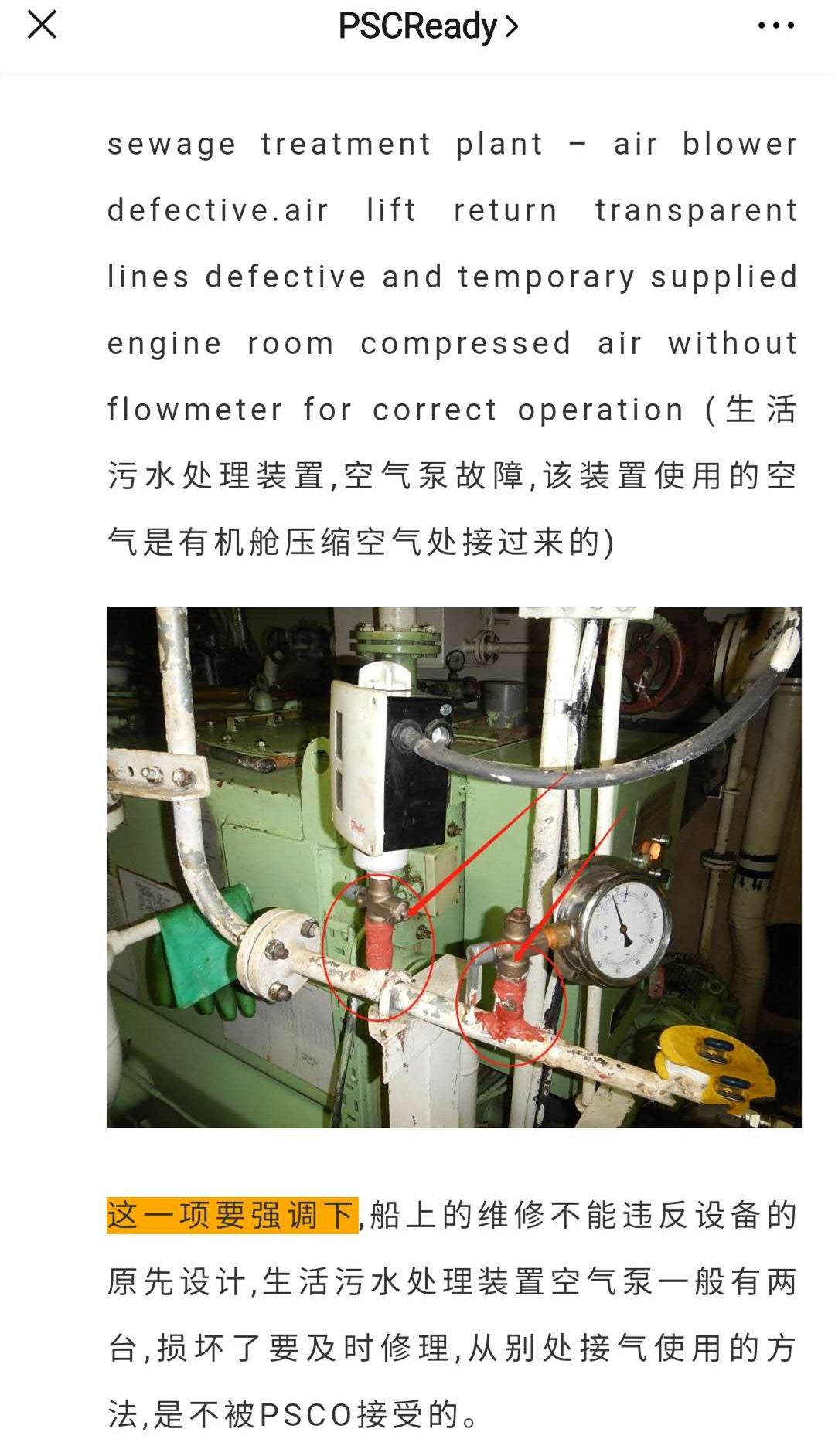 上面是我關(guān)于生活污水處理裝置管理的一些心得體會(huì),水平有限,難免有疏漏的地方,希望各位同仁多多批評(píng)指正。這里再說(shuō)點(diǎn)題外話,我寫(xiě)這篇文章是比較煎熬的,寫(xiě)了很長(zhǎng)時(shí)間:一來(lái)是因?yàn)檫@篇文章涉及很多法律法規(guī)的東西,需要去查資料,確認(rèn)一些說(shuō)法確實(shí)的出處;二來(lái)這篇文章理論性東西太多,大家難免覺(jué)得比較虛,“干貨”太少;而且目前關(guān)于生活污水的管理各個(gè)國(guó)家港口執(zhí)行的標(biāo)準(zhǔn)也不一樣,大家在日常管理、迎檢過(guò)程中會(huì)遇到很多標(biāo)準(zhǔn),多到無(wú)所適從的情況。但是我還是堅(jiān)持把這篇文章寫(xiě)出來(lái)奉獻(xiàn)給大家,是我希望大家在日常管理中除了去做之外,最好還要知道我為什么要這樣做。很多一線操作人員由于并不清楚一些操作程序的來(lái)龍去脈,而對(duì)一些操作抱有抵觸情緒,認(rèn)為是做無(wú)用功或者是被刁難;或者因?yàn)椴涣私夥煞ㄒ?guī)的規(guī)定,被開(kāi)具缺陷后陷入困惑,不知道自己為什么會(huì)被開(kāi)缺陷。尤其是一些法規(guī)設(shè)備,往往有一套固定的操作、測(cè)試、記錄程序;而這些設(shè)備大多數(shù)又不是那種平常一直投入使用的設(shè)備,難免比較生疏。我建議這種法定設(shè)備的主管人員以及部門(mén)主管還是詳細(xì)了解一下設(shè)備相關(guān)的公約、法規(guī)、技術(shù)標(biāo)準(zhǔn)以及某些特殊規(guī)定,有助于我們?cè)谌粘9芾碇懈苡械姆攀?,使設(shè)備維護(hù)管理工作切實(shí)有效。